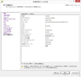 - インストール媒体(9600.17050.WINBLUE_REFRESH.140317-1640_X64FRE_SERVER_EVAL_JA-JP-IR3_SSS_X64FREE_JA-JP_DV9.ISO)は、事前にESXiサーバのdatastore1に保存しておく。